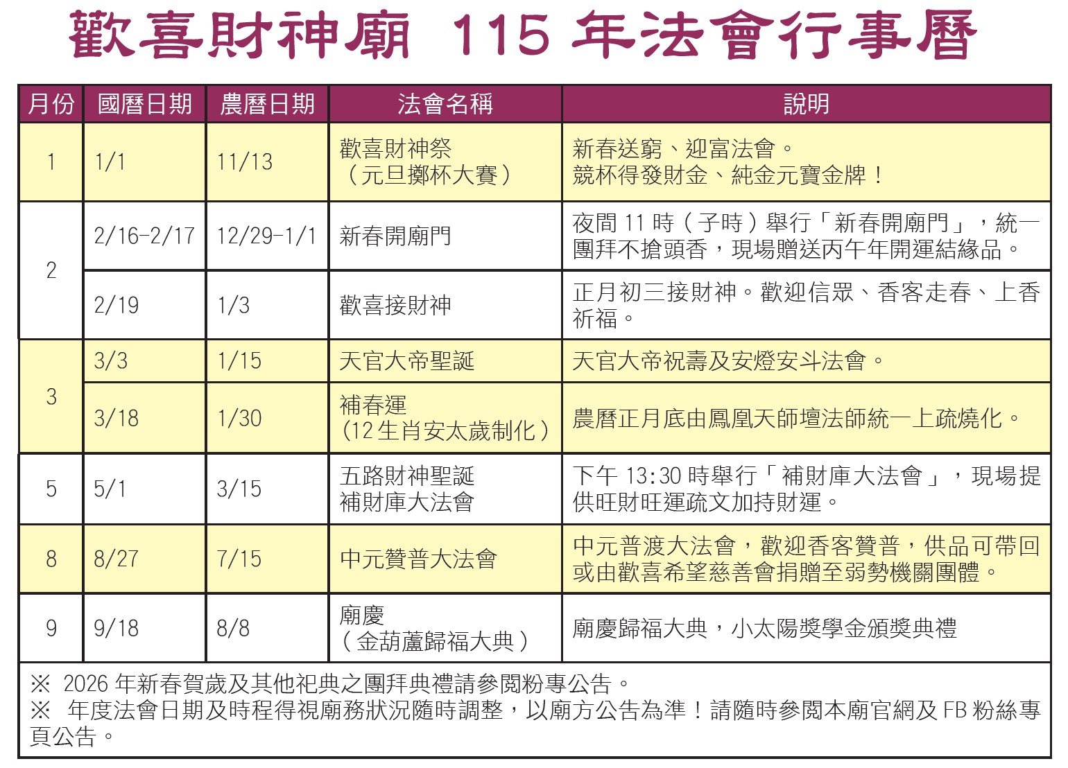 115年法會行事曆